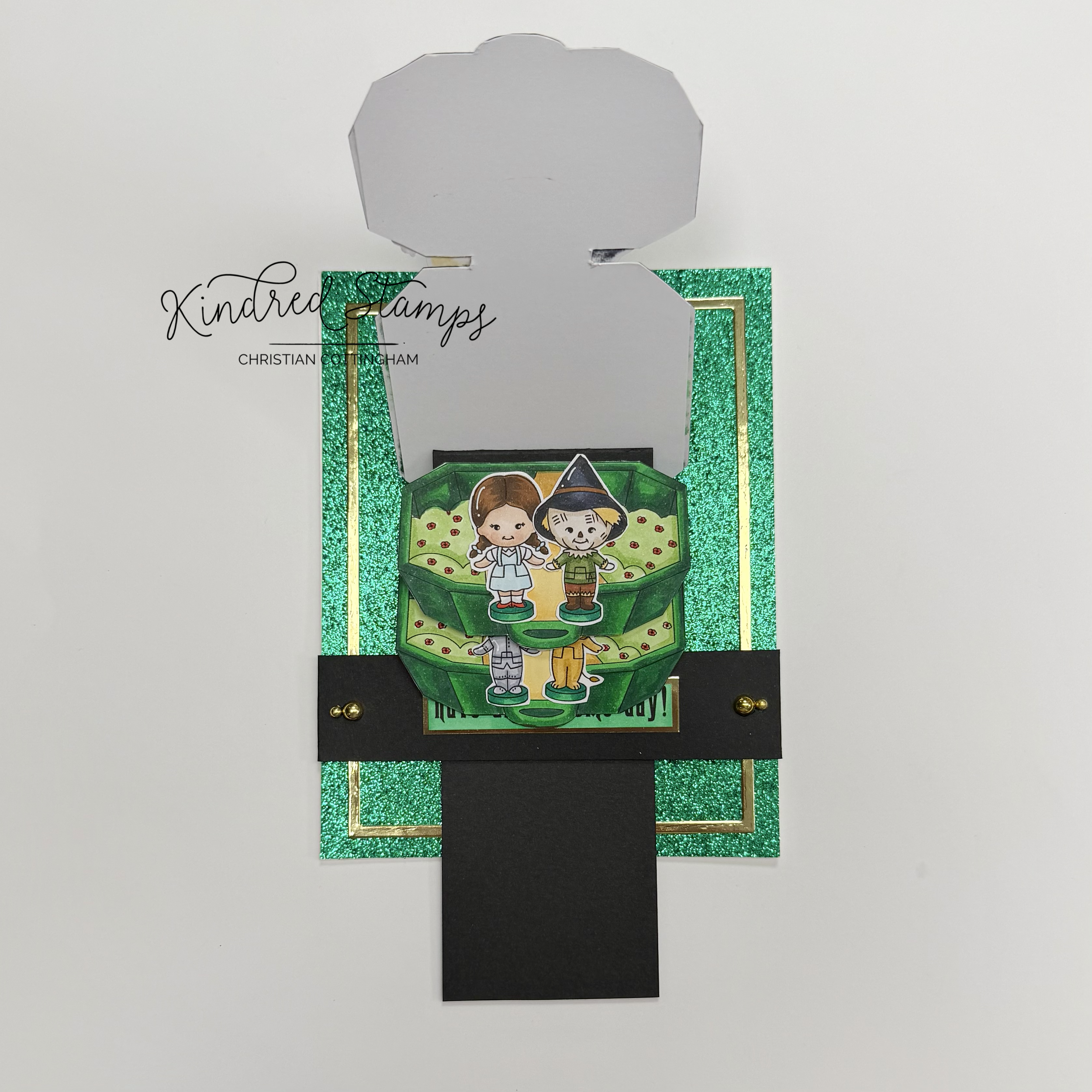 This interactive card makes the Pocket Oz set come to life! With a simple mechanism, you are able to flip through the scenes and see the pocket come to life. Let’s flip in…